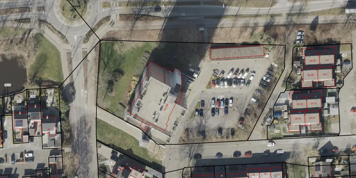 Het perceel waarop het adres ligt is HGV00-P-557. De afkorting 'HGV00' staat voor kadastrale gemeente Hoogeveen. De gemiddelde perceeloppervlakte in de kadastrale gemeente Hoogeveen is 4424,54 m². Dit perceel is met zijn 5069 m² dus groter dan gemiddeld. Het grootste perceel in de kadastrale gemeente is 56,8 ha. Het kleinste perceel heeft een oppervlakte van 0 m². Er zijn 72 adressen aanwezig op het perceel. De laatste wijziging in het de Basisregistratie Kadaster (BRK) was op 30-11-2010.