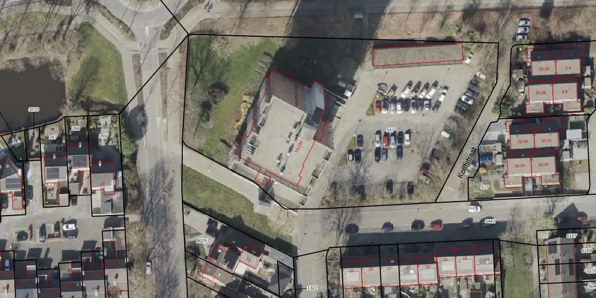 Het perceel waarop het adres ligt is HGV00-P-557. De afkorting 'HGV00' staat voor kadastrale gemeente Hoogeveen. De gemiddelde perceeloppervlakte in de kadastrale gemeente Hoogeveen is 4425,14 m². Dit perceel is met zijn 5069 m² dus groter dan gemiddeld. Het grootste perceel in de kadastrale gemeente is 56,8 ha. Het kleinste perceel heeft een oppervlakte van 0 m². Op het perceel zijn 72 adressen aanwezig. In de Basisregistratie Kadaster (BRK) werden de grenzen van het perceel geregistreerd op 30-11-2010.