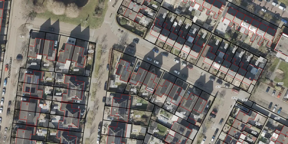 Het perceel waarop Jupiter 12 staat heeft een oppervlakte van 245 m². Dit is een middelgroot perceel. De perceeloppervlakte wordt geregistreerd door het Kadaster. Gedetailleerde informatie over de maten van dit perceel kunt u vinden in het rapport Kadastrale kaart met maatvoering van Jupiter 12.