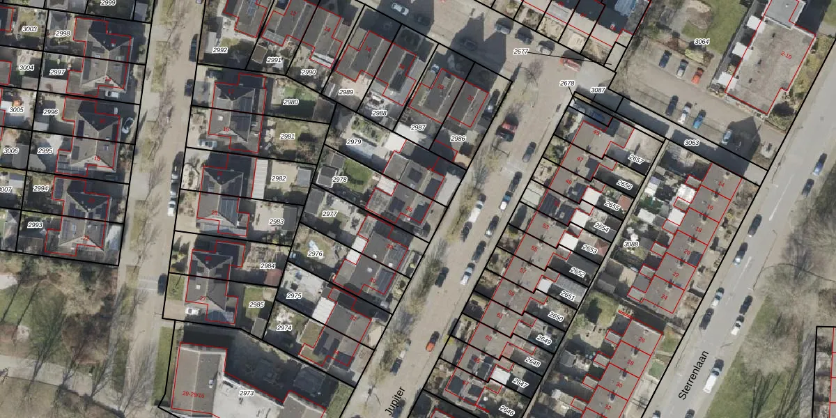 Het perceel waarop Jupiter 26 staat heeft een oppervlakte van 311 m². Dit is een groot perceel. De perceeloppervlakte wordt geregistreerd door het Kadaster. Gedetailleerde informatie over de maten van dit perceel kunt u vinden in het rapport Kadastrale kaart met maatvoering van Jupiter 26.