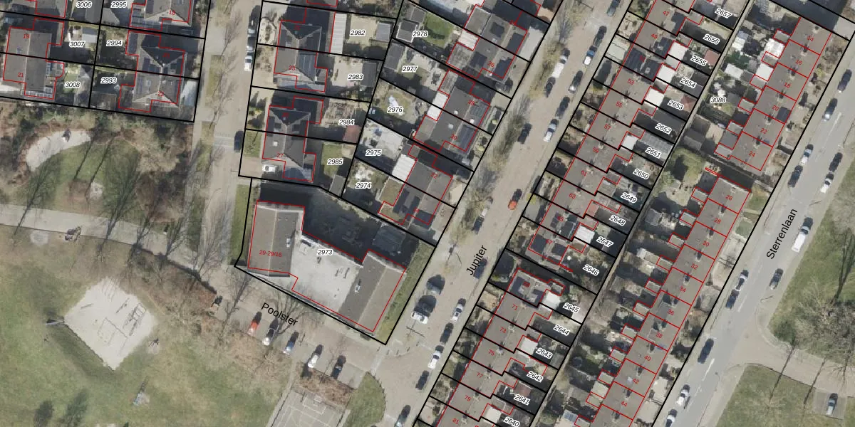 Het perceel waarop Jupiter 34 staat heeft een oppervlakte van 261 m². Dit is een middelgroot perceel. De perceeloppervlakte wordt geregistreerd door het Kadaster. Gedetailleerde informatie over de maten van dit perceel kunt u vinden in het rapport Kadastrale kaart met maatvoering van Jupiter 34.