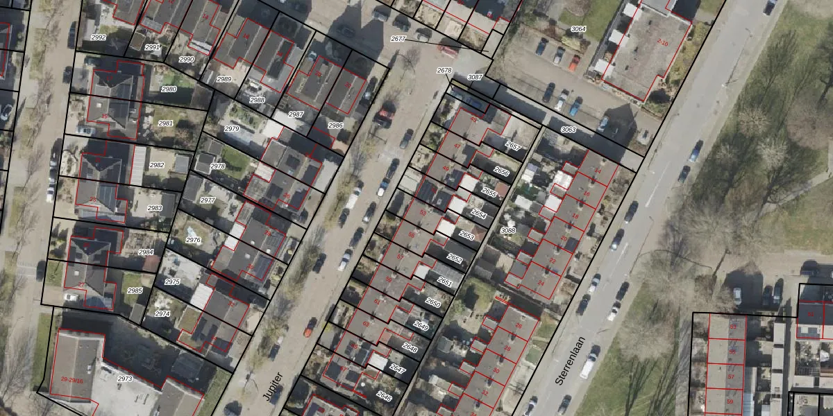 Het perceel waarop Jupiter 53 staat heeft een oppervlakte van 145 m². Dit is een middelgroot perceel. De perceeloppervlakte wordt geregistreerd door het Kadaster. Gedetailleerde informatie over de maten van dit perceel kunt u vinden in het rapport Kadastrale kaart met maatvoering van Jupiter 53.