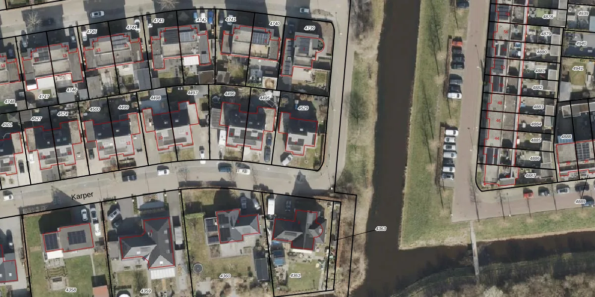 Het perceel waarop Karper 2 staat heeft een oppervlakte van 421 m². Dit is een groot perceel. De perceeloppervlakte wordt geregistreerd door het Kadaster. Gedetailleerde informatie over de maten van dit perceel kunt u vinden in het rapport Kadastrale kaart met maatvoering van Karper 2.
