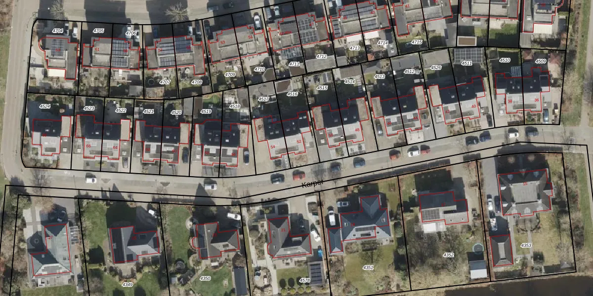 Het perceel waarop Karper 52 staat heeft een oppervlakte van 304 m². Dit is een groot perceel. De perceeloppervlakte wordt geregistreerd door het Kadaster. Gedetailleerde informatie over de maten van dit perceel kunt u vinden in het rapport Kadastrale kaart met maatvoering van Karper 52.