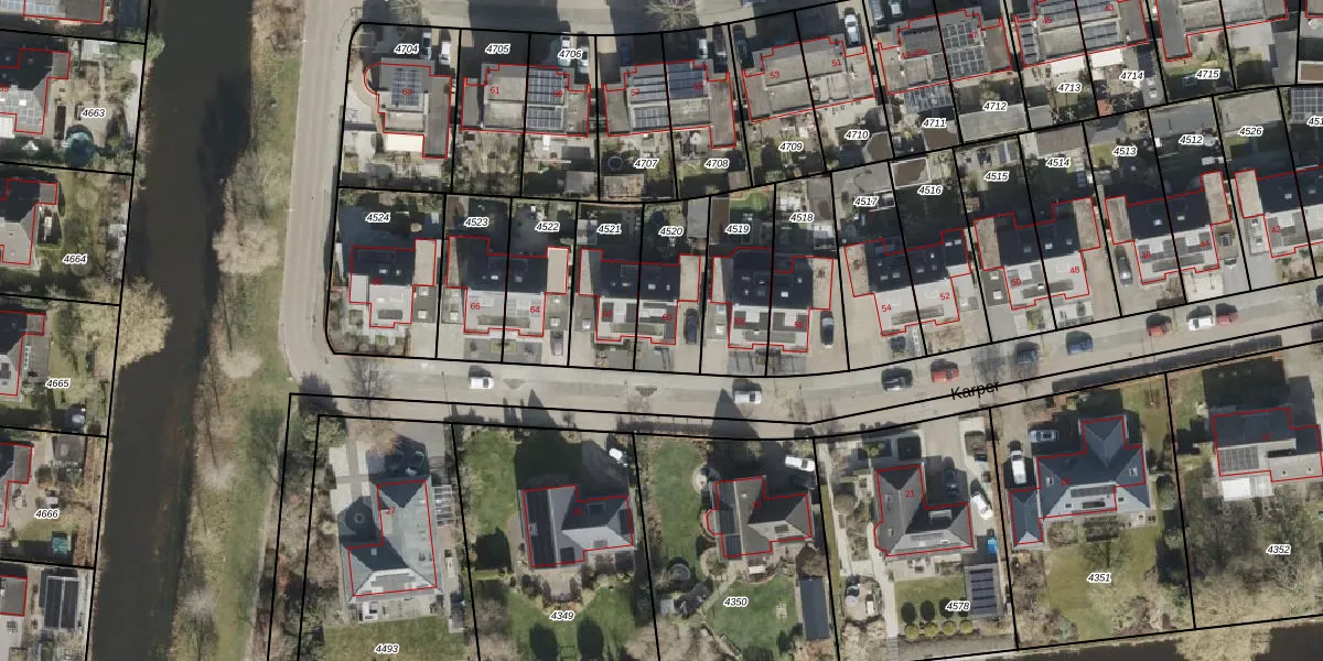 Het perceel waarop Karper 60 staat heeft een oppervlakte van 261 m². Dit is een middelgroot perceel. De perceeloppervlakte wordt geregistreerd door het Kadaster. Gedetailleerde informatie over de maten van dit perceel kunt u vinden in het rapport Kadastrale kaart met maatvoering van Karper 60.