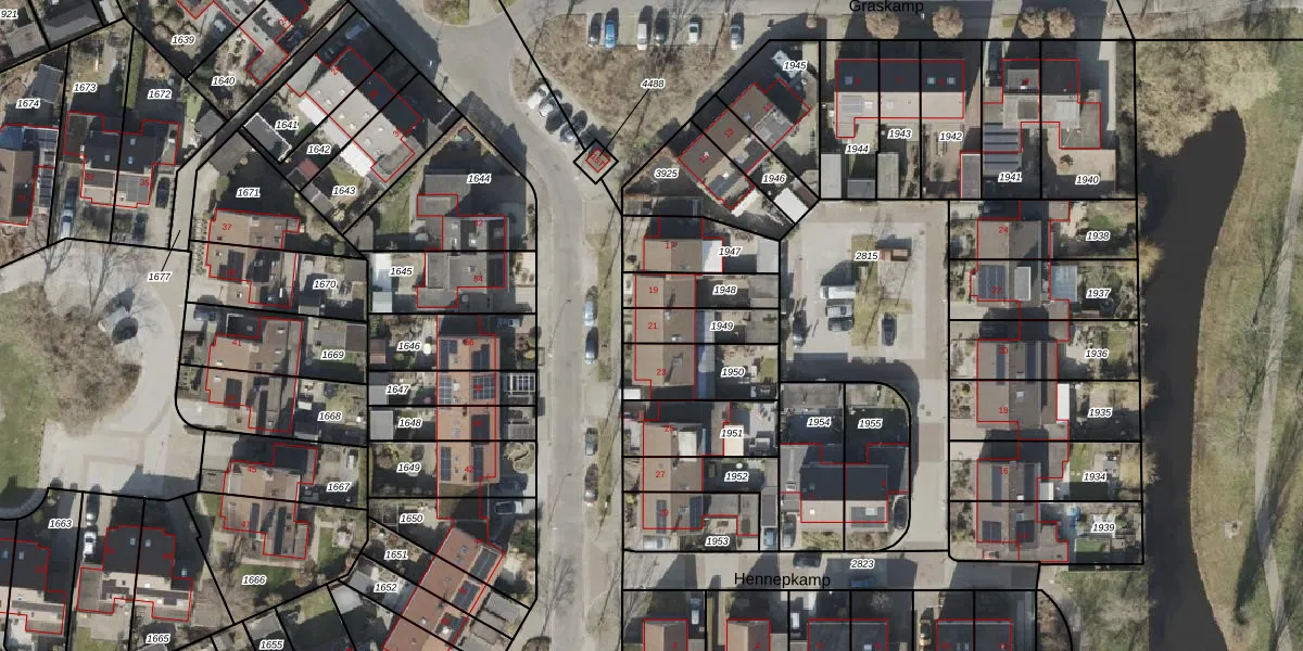 Het perceel waarop het adres ligt is HGV00-P-1949. De afkorting 'HGV00' staat voor kadastrale gemeente Hoogeveen. De gemiddelde perceelgrootte in Hoogeveen is 4425,9 m². Dit perceel is kleiner: de perceeloppervlakte bedraagt 130 m². Het grootste perceel in de kadastrale gemeente is 56,8 ha. Het kleinste perceel heeft een oppervlakte van 0 m². Op het perceel bevinden zich geen andere adressen. De huidige grenzen van het perceel zijn digitaal in de Basisregistratie Kadaster (BRK) geregistreerd op 02-05-2002.