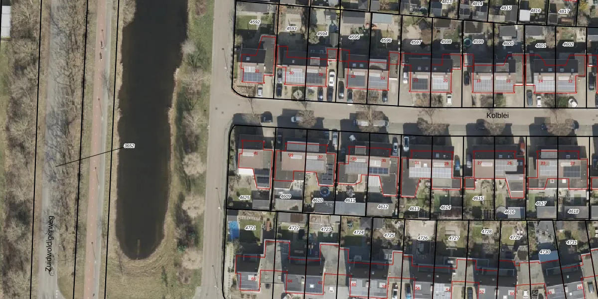 Kolblei 39 is gelegen op kadastraal perceel HGV00P4609. Deze kadastrale aanduiding is uniek en wordt gebruikt door het Kadaster om eigendomsrechten en andere zakelijke rechten vast te leggen. Het perceel maakt onderdeel uit van de kadastrale gemeente Hoogeveen.