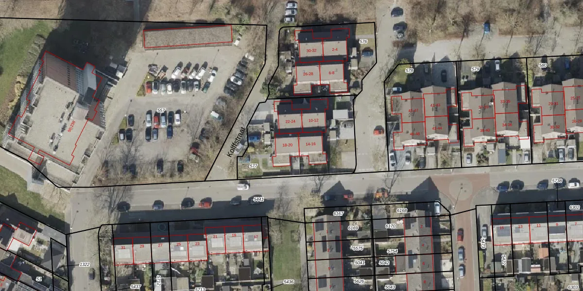Het perceel waarop Kolffstraat 20 staat heeft een oppervlakte van 997 m². Dit is een groot perceel. De perceeloppervlakte wordt geregistreerd door het Kadaster. Gedetailleerde informatie over de maten van dit perceel kunt u vinden in het rapport Kadastrale kaart met maatvoering van Kolffstraat 20.