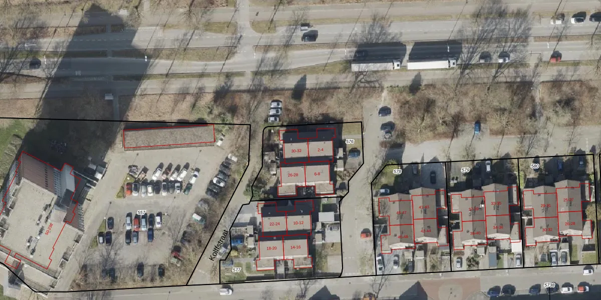 Het perceel waarop Kolffstraat 32 staat heeft een oppervlakte van 808 m². Dit is een groot perceel. De perceeloppervlakte wordt geregistreerd door het Kadaster. Gedetailleerde informatie over de maten van dit perceel kunt u vinden in het rapport Kadastrale kaart met maatvoering van Kolffstraat 32.