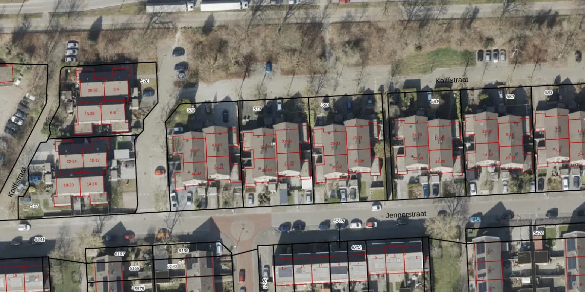 Het perceel waarop Kolffstraat 35 staat heeft een oppervlakte van 878 m². Dit is een groot perceel. De perceeloppervlakte wordt geregistreerd door het Kadaster. Gedetailleerde informatie over de maten van dit perceel kunt u vinden in het rapport Kadastrale kaart met maatvoering van Kolffstraat 35.