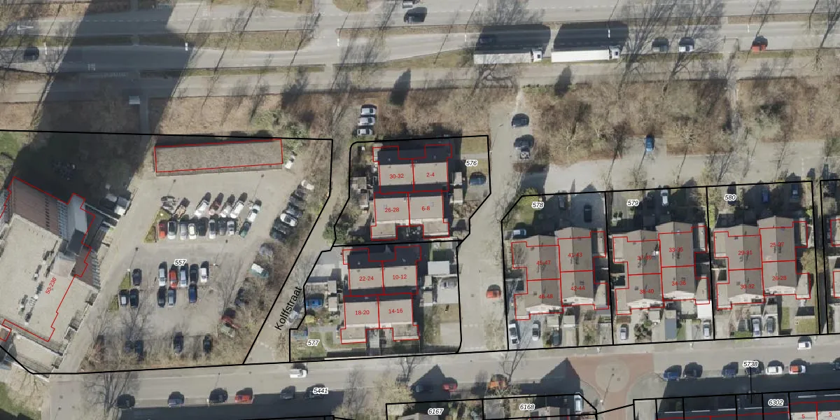 Kolffstraat 8 is gelegen op kadastraal perceel HGV00P576. Deze kadastrale aanduiding is uniek en wordt gebruikt door het Kadaster om eigendomsrechten en andere zakelijke rechten vast te leggen. Het perceel maakt onderdeel uit van de kadastrale gemeente Hoogeveen.