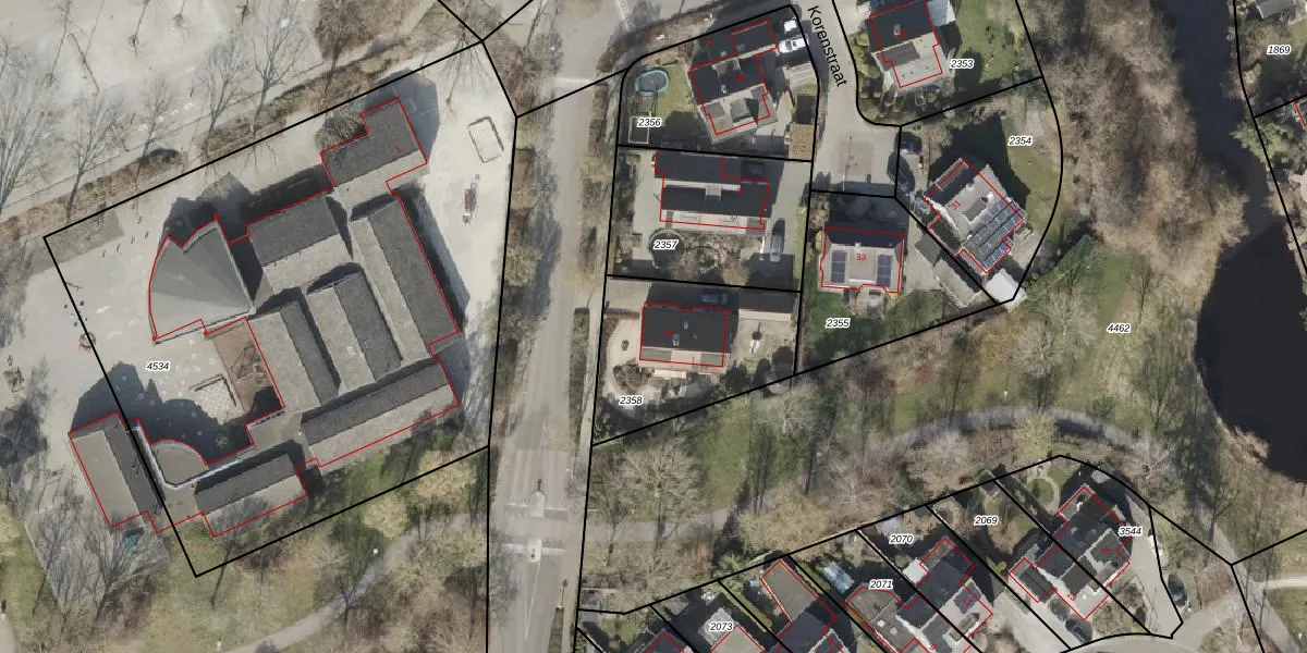 Het perceel waarop Korenstraat 39 staat heeft een oppervlakte van 587 m². Dit is een groot perceel. De perceeloppervlakte wordt geregistreerd door het Kadaster. Gedetailleerde informatie over de maten van dit perceel kunt u vinden in het rapport Kadastrale kaart met maatvoering van Korenstraat 39.