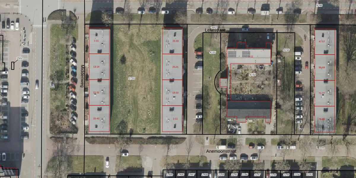 Leliestraat 17 is gelegen op kadastraal perceel HGV00I2755. Deze kadastrale aanduiding is uniek en wordt gebruikt door het Kadaster om eigendomsrechten en andere zakelijke rechten vast te leggen. Het perceel maakt onderdeel uit van de kadastrale gemeente Hoogeveen.