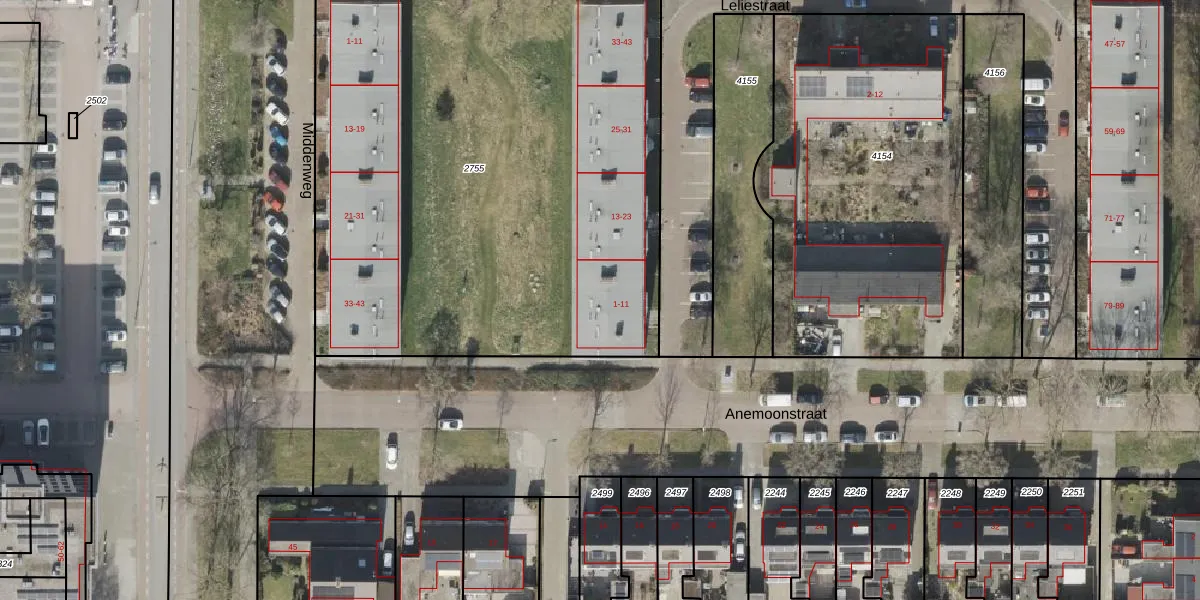Leliestraat 5 is gelegen op kadastraal perceel HGV00I2755. Deze kadastrale aanduiding is uniek en wordt gebruikt door het Kadaster om eigendomsrechten en andere zakelijke rechten vast te leggen. Het perceel maakt onderdeel uit van de kadastrale gemeente Hoogeveen.