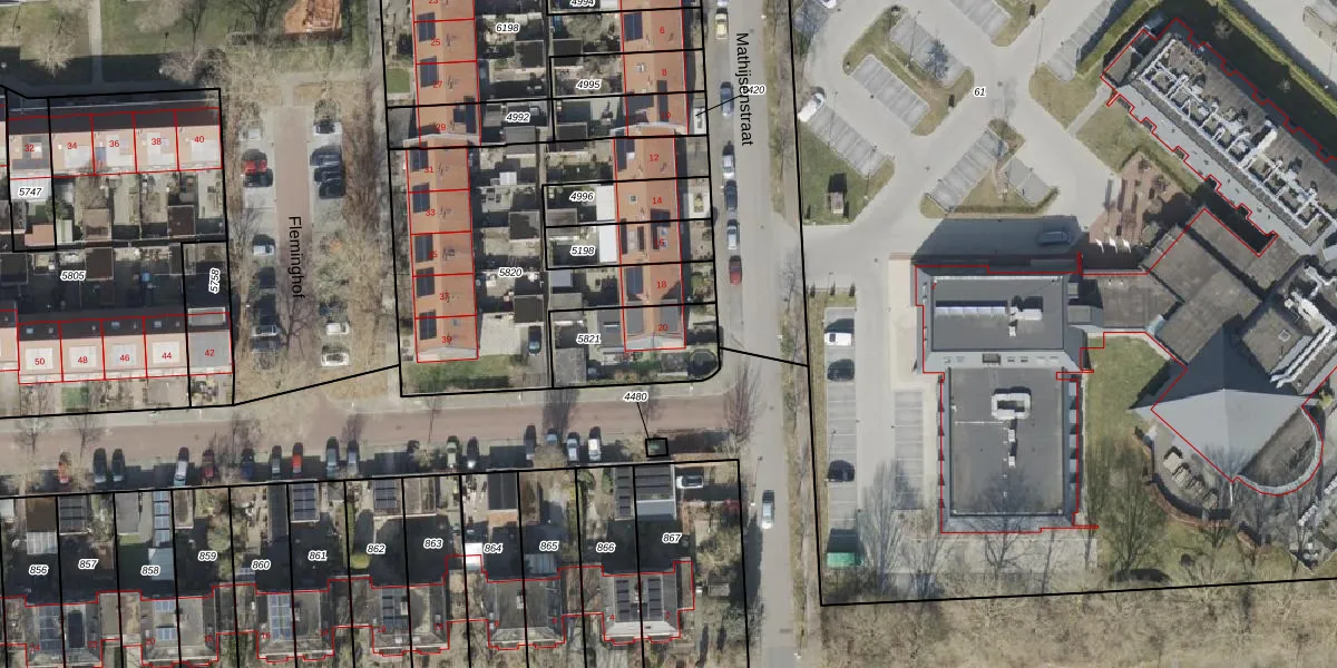 Mathijsenstraat 20 is gelegen op kadastraal perceel HGV00P5821. Deze kadastrale aanduiding is uniek en wordt gebruikt door het Kadaster om eigendomsrechten en andere zakelijke rechten vast te leggen. Het perceel maakt onderdeel uit van de kadastrale gemeente Hoogeveen.