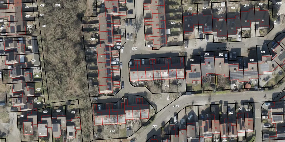 Het perceel waarop Mortonhof 27 staat heeft een oppervlakte van 909 m². Dit is een groot perceel. De perceeloppervlakte wordt geregistreerd door het Kadaster. Gedetailleerde informatie over de maten van dit perceel kunt u vinden in het rapport Kadastrale kaart met maatvoering van Mortonhof 27.