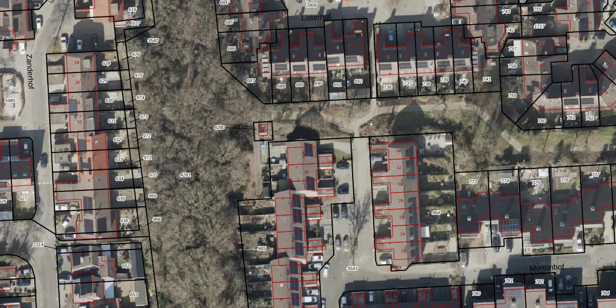 Het perceel waarop Mortonhof 36 staat heeft een oppervlakte van 1953 m². Dit is een zeer groot perceel. De perceeloppervlakte wordt geregistreerd door het Kadaster. Gedetailleerde informatie over de maten van dit perceel kunt u vinden in het rapport Kadastrale kaart met maatvoering van Mortonhof 36.