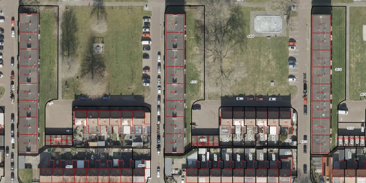Het perceel waarop Narcisstraat 29 staat heeft een oppervlakte van 1550 m². Dit is een zeer groot perceel. De perceeloppervlakte wordt geregistreerd door het Kadaster. Gedetailleerde informatie over de maten van dit perceel kunt u vinden in het rapport Kadastrale kaart met maatvoering van Narcisstraat 29.