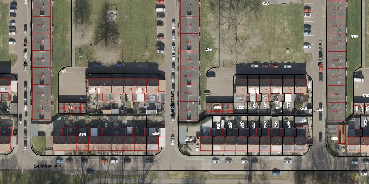Het perceel waarop Narcisstraat 37 staat heeft een oppervlakte van 1550 m². Dit is een zeer groot perceel. De perceeloppervlakte wordt geregistreerd door het Kadaster. Gedetailleerde informatie over de maten van dit perceel kunt u vinden in het rapport Kadastrale kaart met maatvoering van Narcisstraat 37.