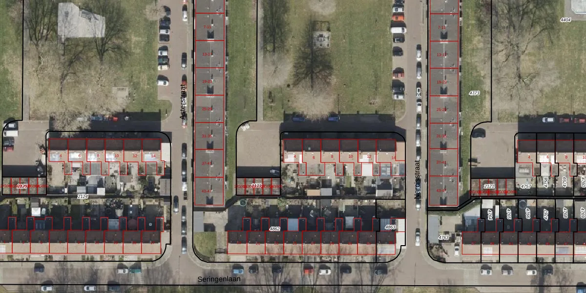 Het perceel waarop Narcisstraat 4 staat heeft een oppervlakte van 3848 m². Dit is een zeer groot perceel. De perceeloppervlakte wordt geregistreerd door het Kadaster. Gedetailleerde informatie over de maten van dit perceel kunt u vinden in het rapport Kadastrale kaart met maatvoering van Narcisstraat 4.