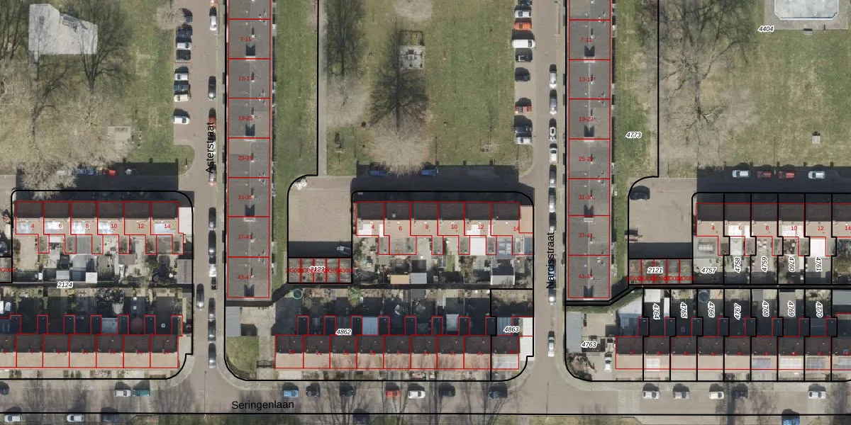 Het perceel waarop Narcisstraat 8 staat heeft een oppervlakte van 3848 m². Dit is een zeer groot perceel. De perceeloppervlakte wordt geregistreerd door het Kadaster. Gedetailleerde informatie over de maten van dit perceel kunt u vinden in het rapport Kadastrale kaart met maatvoering van Narcisstraat 8.
