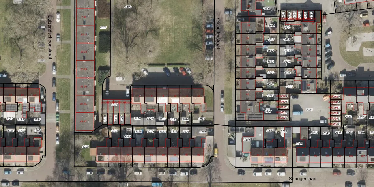 Gebruik de zoekbalk of klik op een perceel voor informatie over de adressen binnen dit perceel.