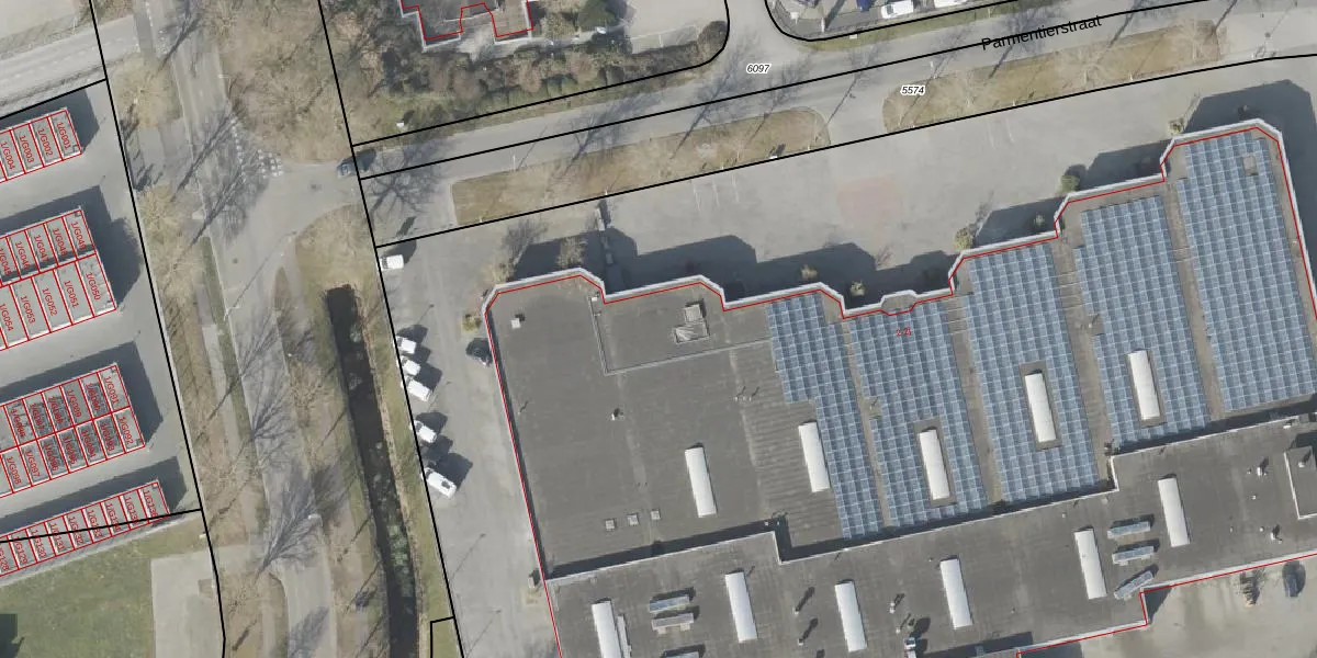 Het perceel waarop Parmentierstraat 2-j staat heeft een oppervlakte van 1,5 ha. Dit is een zeer groot perceel. De perceeloppervlakte wordt geregistreerd door het Kadaster. Gedetailleerde informatie over de maten van dit perceel kunt u vinden in het rapport Kadastrale kaart met maatvoering van Parmentierstraat 2-j.