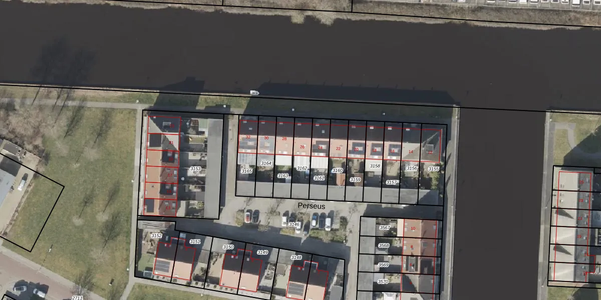 Het perceel waarop Perseus 26 staat heeft een oppervlakte van 163 m². Dit is een middelgroot perceel. De perceeloppervlakte wordt geregistreerd door het Kadaster. Gedetailleerde informatie over de maten van dit perceel kunt u vinden in het rapport Kadastrale kaart met maatvoering van Perseus 26.