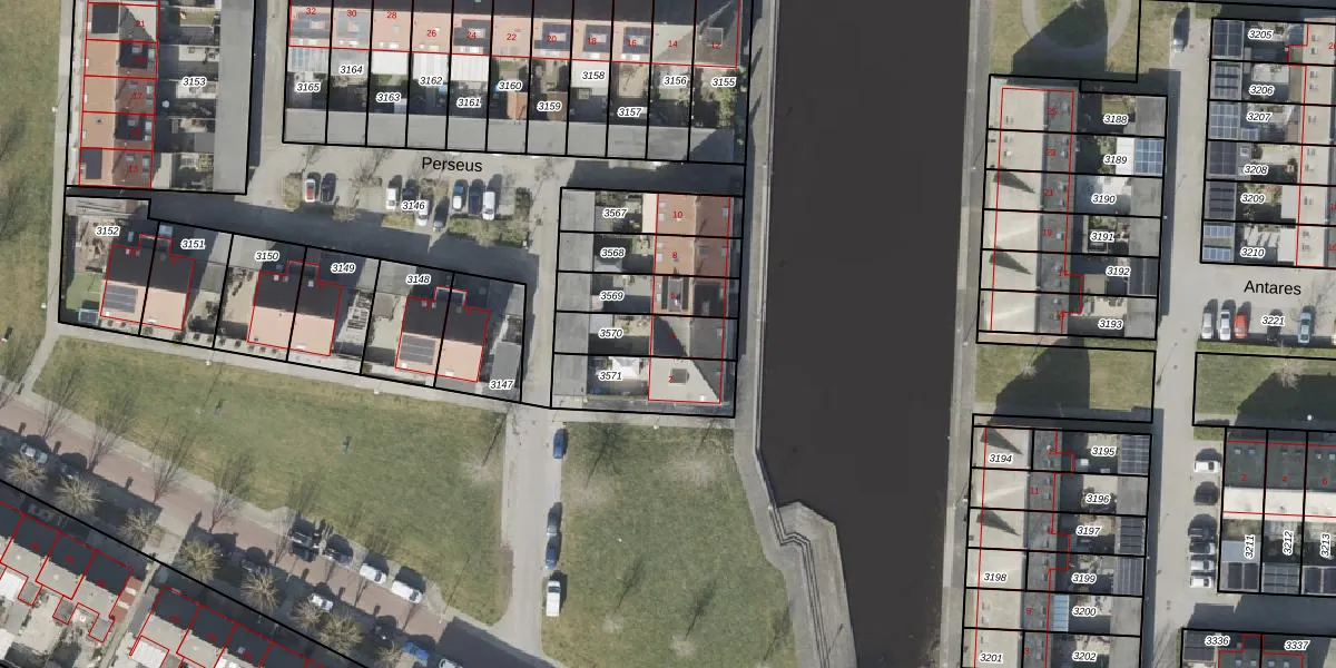 Het perceel waarop Perseus 4 staat heeft een oppervlakte van 173 m². Dit is een middelgroot perceel. De perceeloppervlakte wordt geregistreerd door het Kadaster. Gedetailleerde informatie over de maten van dit perceel kunt u vinden in het rapport Kadastrale kaart met maatvoering van Perseus 4.