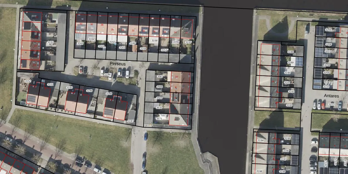 Het perceel waarop Perseus 8 staat heeft een oppervlakte van 165 m². Dit is een middelgroot perceel. De perceeloppervlakte wordt geregistreerd door het Kadaster. Gedetailleerde informatie over de maten van dit perceel kunt u vinden in het rapport Kadastrale kaart met maatvoering van Perseus 8.