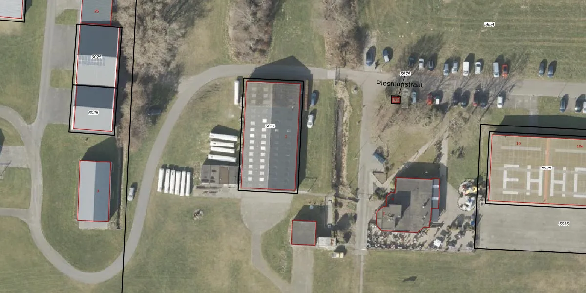 Plesmanstraat 1 is gelegen op kadastraal perceel HGV00B5861. Deze kadastrale aanduiding is uniek en wordt gebruikt door het Kadaster om eigendomsrechten en andere zakelijke rechten vast te leggen. Het perceel maakt onderdeel uit van de kadastrale gemeente Hoogeveen.