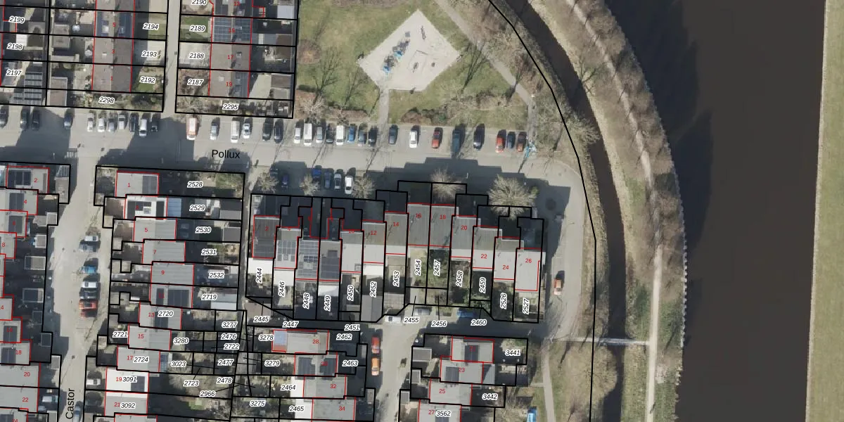 Het perceel waarop Pollux 16 staat heeft een oppervlakte van 137 m². Dit is een middelgroot perceel. De perceeloppervlakte wordt geregistreerd door het Kadaster. Gedetailleerde informatie over de maten van dit perceel kunt u vinden in het rapport Kadastrale kaart met maatvoering van Pollux 16.