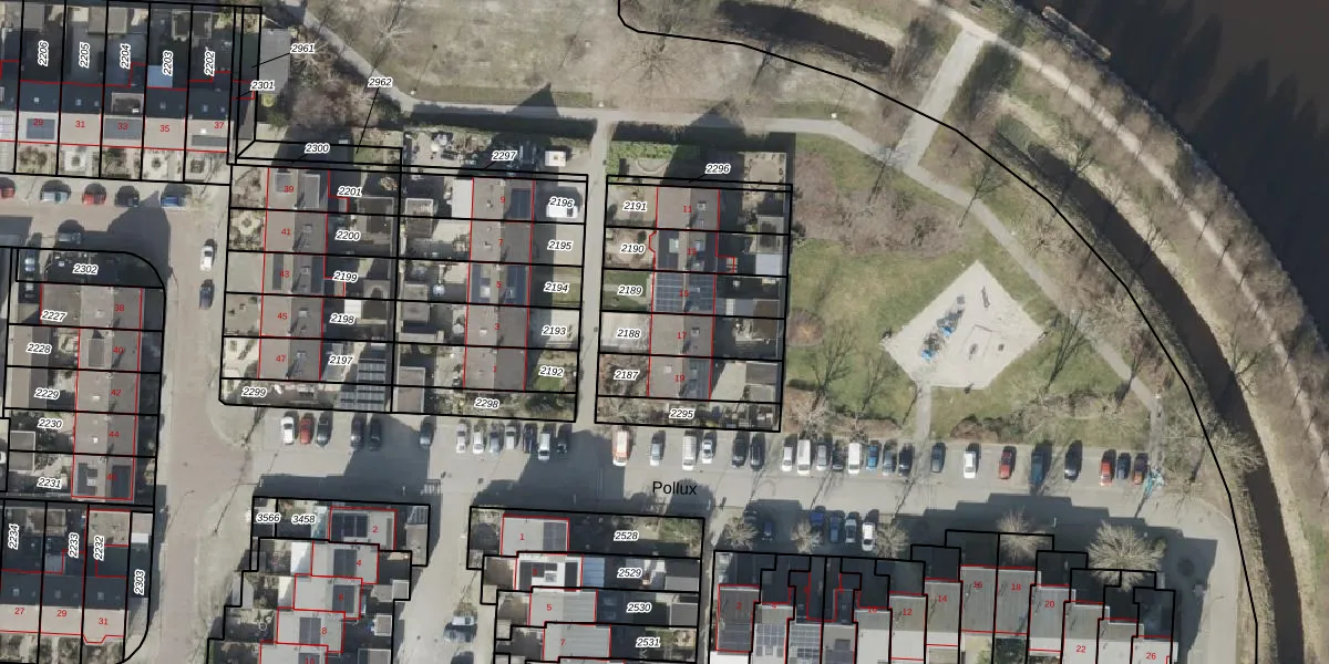 Het perceel waarop Pollux 17 staat heeft een oppervlakte van 175 m². Dit is een middelgroot perceel. De perceeloppervlakte wordt geregistreerd door het Kadaster. Gedetailleerde informatie over de maten van dit perceel kunt u vinden in het rapport Kadastrale kaart met maatvoering van Pollux 17.