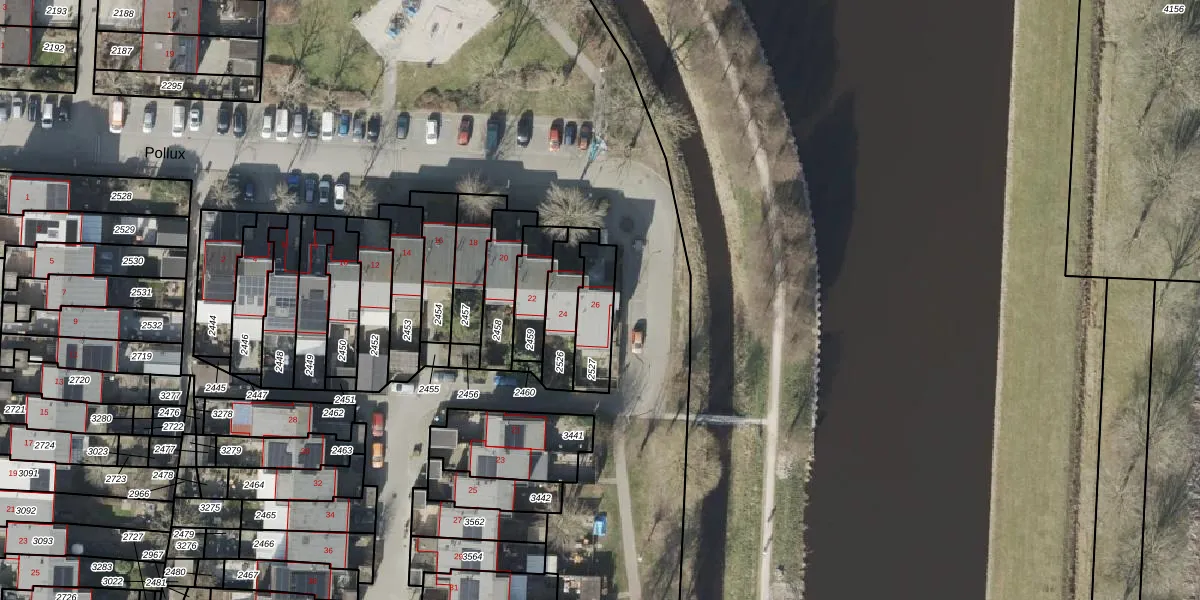 Het perceel waarop Pollux 26 staat heeft een oppervlakte van 142 m². Dit is een middelgroot perceel. De perceeloppervlakte wordt geregistreerd door het Kadaster. Gedetailleerde informatie over de maten van dit perceel kunt u vinden in het rapport Kadastrale kaart met maatvoering van Pollux 26.