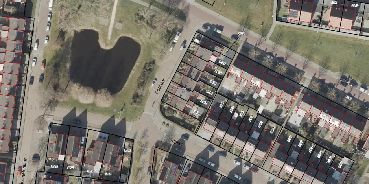 Het perceel waarop Poolster 13 staat heeft een oppervlakte van 150 m². Dit is een middelgroot perceel. De perceeloppervlakte wordt geregistreerd door het Kadaster. Gedetailleerde informatie over de maten van dit perceel kunt u vinden in het rapport Kadastrale kaart met maatvoering van Poolster 13.