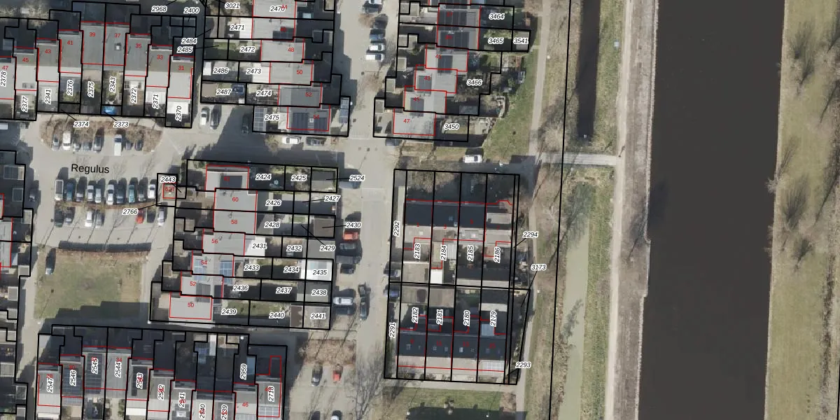 Het perceel waarop Regulus 1 staat heeft een oppervlakte van 177 m². Dit is een middelgroot perceel. De perceeloppervlakte wordt geregistreerd door het Kadaster. Gedetailleerde informatie over de maten van dit perceel kunt u vinden in het rapport Kadastrale kaart met maatvoering van Regulus 1.