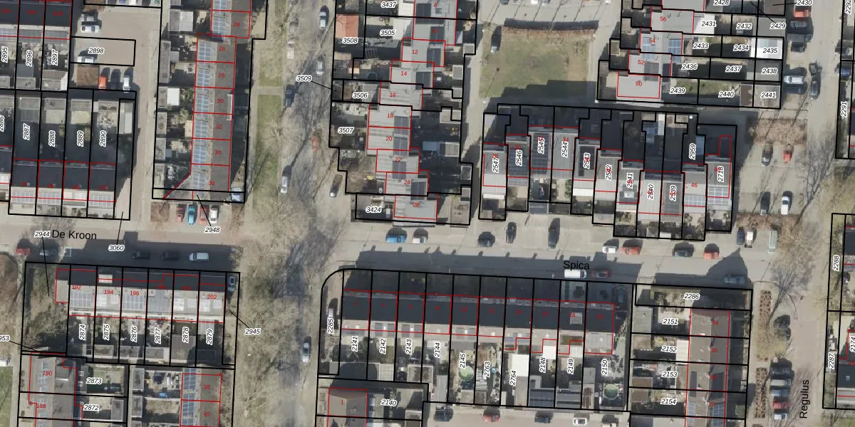 Het perceel waarop Regulus 26 staat heeft een oppervlakte van 178 m². Dit is een middelgroot perceel. De perceeloppervlakte wordt geregistreerd door het Kadaster. Gedetailleerde informatie over de maten van dit perceel kunt u vinden in het rapport Kadastrale kaart met maatvoering van Regulus 26.