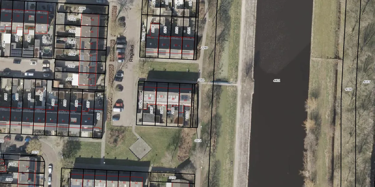 Het perceel waarop Regulus 33 staat heeft een oppervlakte van 153 m². Dit is een middelgroot perceel. De perceeloppervlakte wordt geregistreerd door het Kadaster. Gedetailleerde informatie over de maten van dit perceel kunt u vinden in het rapport Kadastrale kaart met maatvoering van Regulus 33.