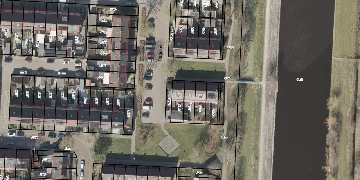 Het perceel waarop Regulus 39 staat heeft een oppervlakte van 153 m². Dit is een middelgroot perceel. De perceeloppervlakte wordt geregistreerd door het Kadaster. Gedetailleerde informatie over de maten van dit perceel kunt u vinden in het rapport Kadastrale kaart met maatvoering van Regulus 39.