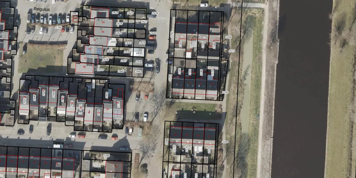 Het perceel waarop Regulus 9 staat heeft een oppervlakte van 150 m². Dit is een middelgroot perceel. De perceeloppervlakte wordt geregistreerd door het Kadaster. Gedetailleerde informatie over de maten van dit perceel kunt u vinden in het rapport Kadastrale kaart met maatvoering van Regulus 9.