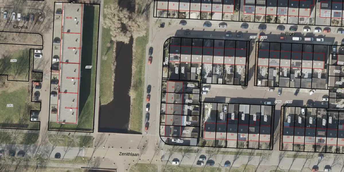 Het perceel waarop Rigel 10 staat heeft een oppervlakte van 165 m². Dit is een middelgroot perceel. De perceeloppervlakte wordt geregistreerd door het Kadaster. Gedetailleerde informatie over de maten van dit perceel kunt u vinden in het rapport Kadastrale kaart met maatvoering van Rigel 10.