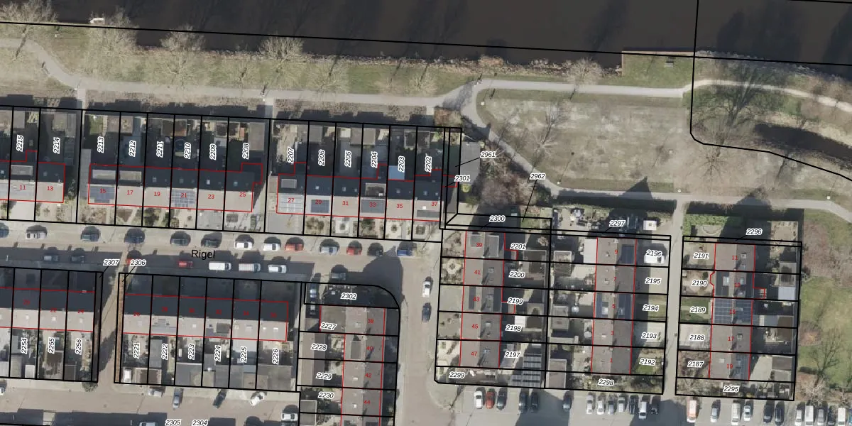 Het perceel waarop Rigel 37 staat heeft een oppervlakte van 178 m². Dit is een middelgroot perceel. De perceeloppervlakte wordt geregistreerd door het Kadaster. Gedetailleerde informatie over de maten van dit perceel kunt u vinden in het rapport Kadastrale kaart met maatvoering van Rigel 37.