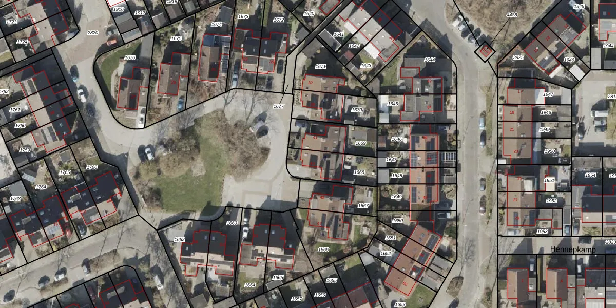 Gebruik de zoekbalk of klik op een perceel voor informatie over de adressen binnen dit perceel.