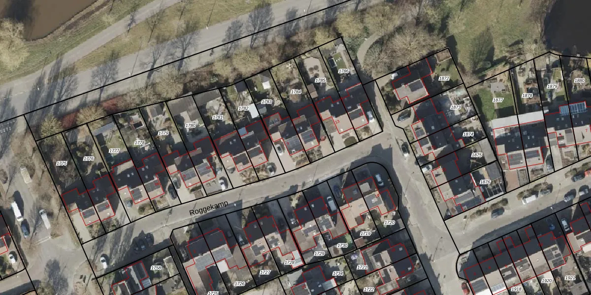 Het perceel waarop Roggekamp 9 staat heeft een oppervlakte van 317 m². Dit is een groot perceel. De perceeloppervlakte wordt geregistreerd door het Kadaster. Gedetailleerde informatie over de maten van dit perceel kunt u vinden in het rapport Kadastrale kaart met maatvoering van Roggekamp 9.