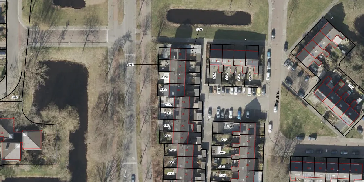 Het perceel waarop Saturnus 16 staat heeft een oppervlakte van 157 m². Dit is een middelgroot perceel. De perceeloppervlakte wordt geregistreerd door het Kadaster. Gedetailleerde informatie over de maten van dit perceel kunt u vinden in het rapport Kadastrale kaart met maatvoering van Saturnus 16.