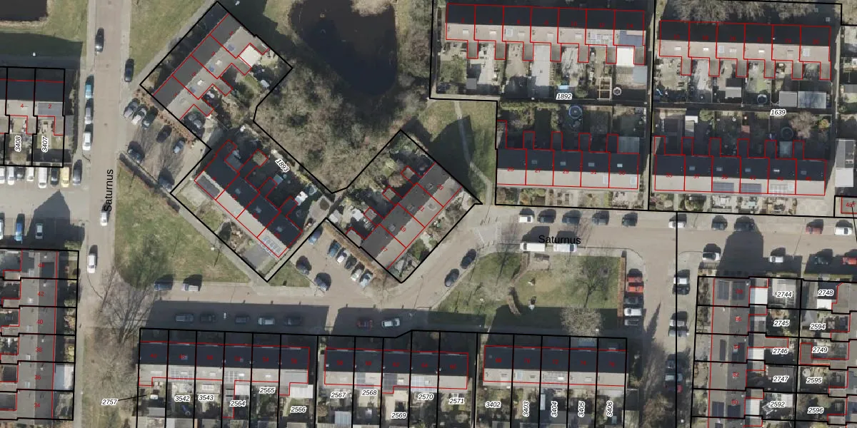 Het perceel waarop Saturnus 21 staat heeft een oppervlakte van 2055 m². Dit is een zeer groot perceel. De perceeloppervlakte wordt geregistreerd door het Kadaster. Gedetailleerde informatie over de maten van dit perceel kunt u vinden in het rapport Kadastrale kaart met maatvoering van Saturnus 21.