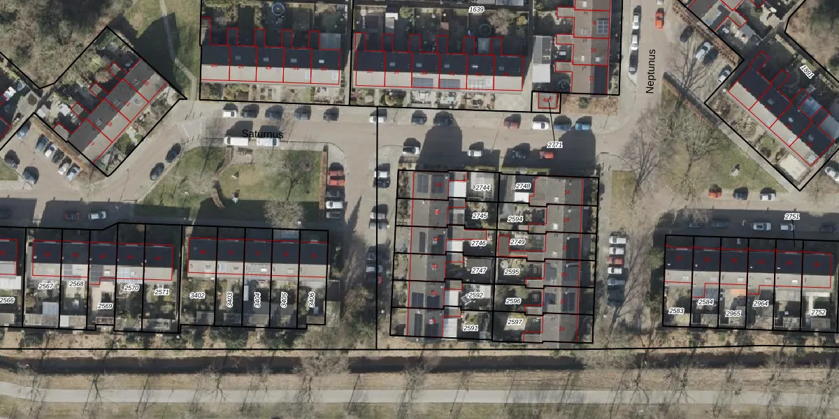 Gebruik de zoekbalk of klik op een perceel voor informatie over de adressen binnen dit perceel.