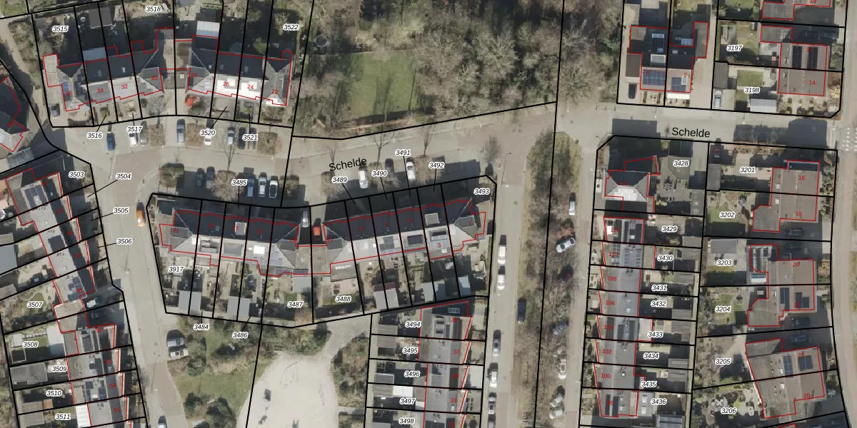 Gebruik de zoekbalk of klik op een perceel voor informatie over de adressen binnen dit perceel.
