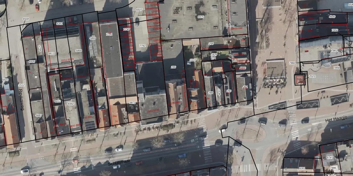Schutstraat 10-22 is gelegen op kadastraal perceel HGV00O286. Deze kadastrale aanduiding is uniek en wordt gebruikt door het Kadaster om eigendomsrechten en andere zakelijke rechten vast te leggen. Het perceel maakt onderdeel uit van de kadastrale gemeente Hoogeveen.
