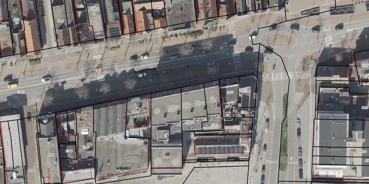 Het perceel waarop Schutstraat 11-14 staat heeft een oppervlakte van 306 m². Dit is een groot perceel. De perceeloppervlakte wordt geregistreerd door het Kadaster. Gedetailleerde informatie over de maten van dit perceel kunt u vinden in het rapport Kadastrale kaart met maatvoering van Schutstraat 11-14.
